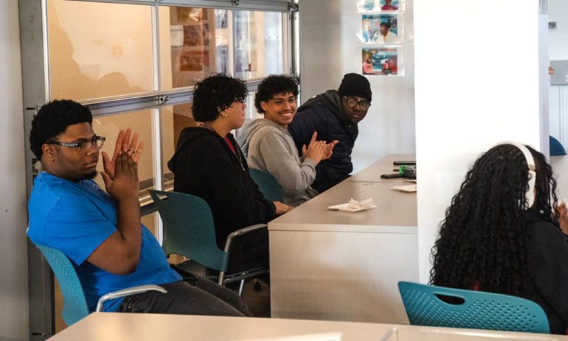 On the Friday of spring break, the last day of their program, the teens presented their videos in groups of three or four. They walked up to the front of the room, some appearing shy, facing their peers and invited guests who included content creators.