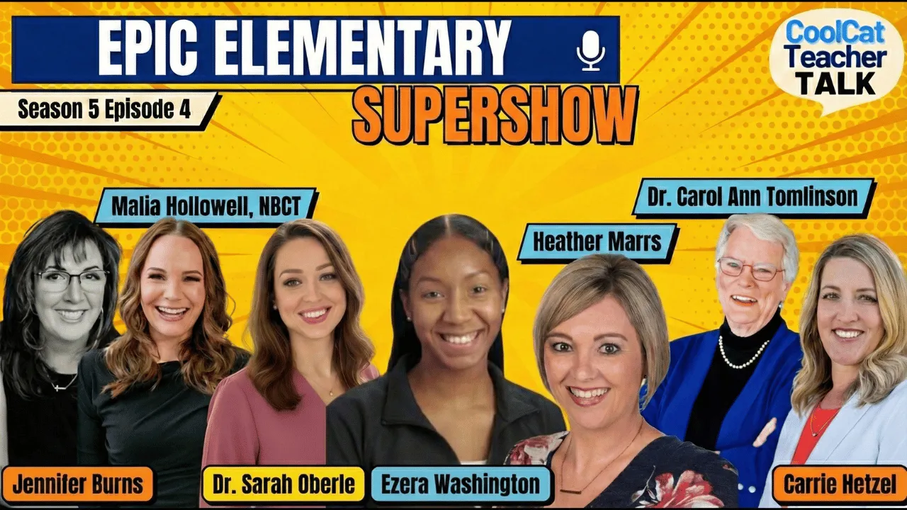 Disclosure of Material Connection: This is a “sponsored podcast episode.” The company who sponsored it compensated me via cash payment, gift, or something else of value to include a reference to their product. Regardless, I only recommend products or services I believe will be good for my readers and are from companies I can recommend. I am disclosing this in accordance with the Federal Trade Commission’s 16 CFR, Part 255: “Guides Concerning the Use of Endorsements and Testimonials in Advertising.”Seven outstanding elementary education experts join forces for the Epic Elementary Supershow! Featuring Jennifer Burns, Malia Hollowell (NBCT), Dr. Sarah Oberle, Ezera Washington, Heather Marrs, Dr. Carol Ann Tomlinson, and Carrie Hetzel sharing practical strategies for elementary classrooms.