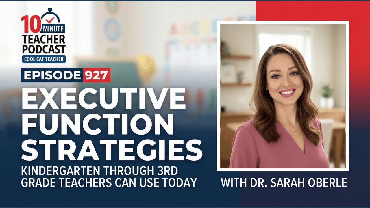 In this episode, Dr. Sarah Oberle, a primary educator and cognitive science expert, breaks down the six executive functions and shares practical executive function strategies that kindergarten through third-grade teachers can use today to reduce cognitive overload. From rethinking how you give directions to reconsidering what’s on your classroom walls, Sarah’s insights will change how you think about student behavior and learning. Whether you’re driving to school, grading papers, or unwinding after a long day, this episode is for you. Sarah is the author of Executive Functions for Every K-3 Classroom: Promoting Self-Regulation for a Strong Start by Mitch Weathers and Sarah Oberle (Corwin, 2026)