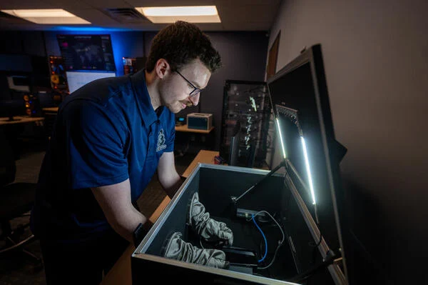 In partnership with the Delaware County District Attorney’s Office and the Aston Township Police Department, the lab analyzes seized digital devices, reviews surveillance footage from crime scenes and monitors live video feeds during active investigations.