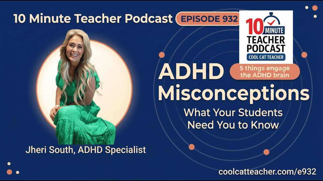 Tool Use Disclosure: This graphic was created from the transcript of this episode in Google Notebook LM. Then it was put into Canva and edited by Vicki Davis using Magic Text grab to correct mistakes, typos, and data errors, and other inconsistencies, and to add research. Claude Cowork was used to compare each mentioned fact with what was said by both Vicki and Jheri on the episode and against research to ensure accuracy. Vicki Davis edited and reviewed this graphic. Research-backed: Dodson (ADDitude); Shaw et al. (Am J Psychiatry, 2014); Barkley (Guilford Press, 2015); Geissler et al. (2014). Full citations at coolcatteacher.com/e932. I provide this disclosure, not because I feel required to, but because I’m often asked about the different tools I use to create infographics, verify their data, and how I edit to improve accuracy and spelling. I hope this helps!